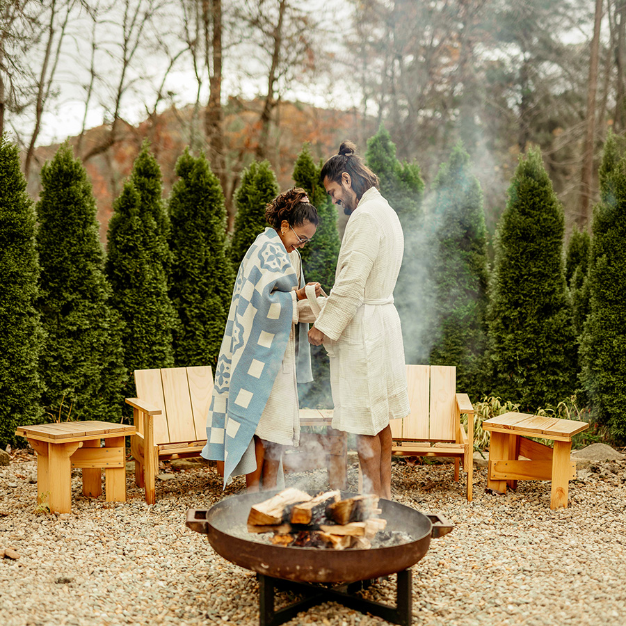 In winter, Highlands feels especially inviting. Wander the shops and galleries of Main Street, then escape to our private 4.5-acre woodland setting. From crackling fire pits and Nordic sauna experiences to intimate evenings at Highlands Supper Club inside the historic Joe Webb log cabin, every moment is designed for warmth and relaxation.