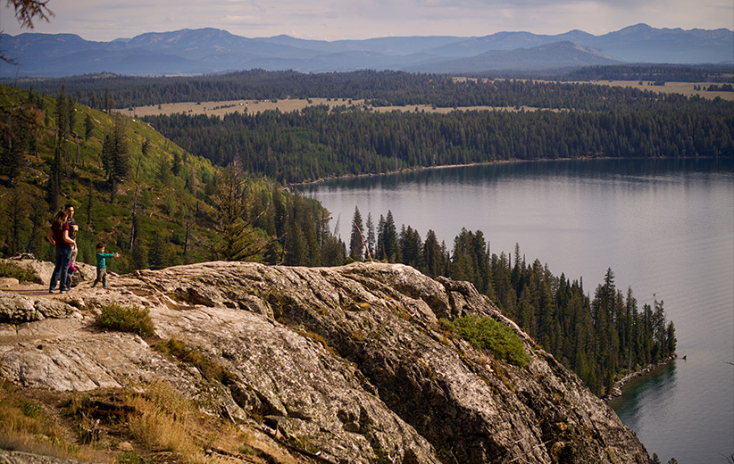 This route climbs slightly before arriving at a lake with exceptional views of the Grand Teton range. Even when the trail is crowded, you may find a spot to yourself on the water’s edge to wade and sun. Walk it counterclockwise for the best views, and extend the route two miles to Bradley Lake for further solitude.