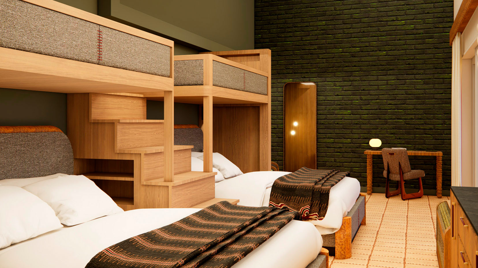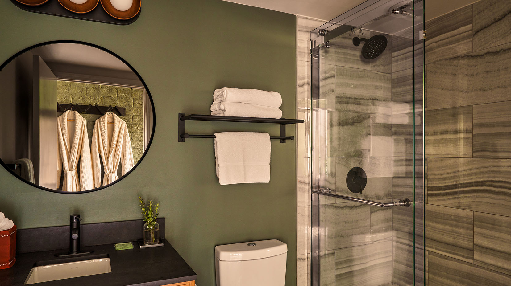 Four is not a crowd here — there’s room to spread out in this spacious suite. The family or crew can wake up rested with a custom-comfort Trailborn king bed and sleeper sofa that converts to a queen bed. Features an en suite, modern bathroom and shower with tubs available upon request.